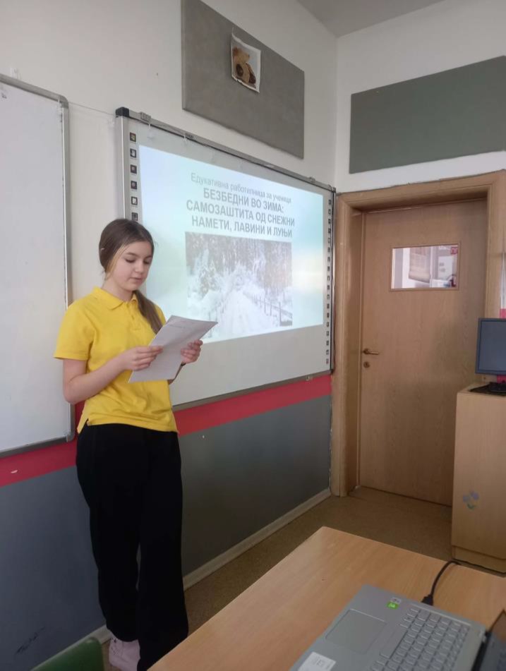 На 20 и 21 јануари 2026 година беше реализирана дводневна едукативна работилница на тема „Самозаштита од снежни намети, лавини и луњи“. Работилницата беше реализирана од предметниот наставник по географија м-р Јована Димовска и истата беше наменета за учениците од VI и VII одделение и имаше за цел унапредување на нивните знаења и вештини за правилно и безбедно однесување при појава на зимски природни непогоди.