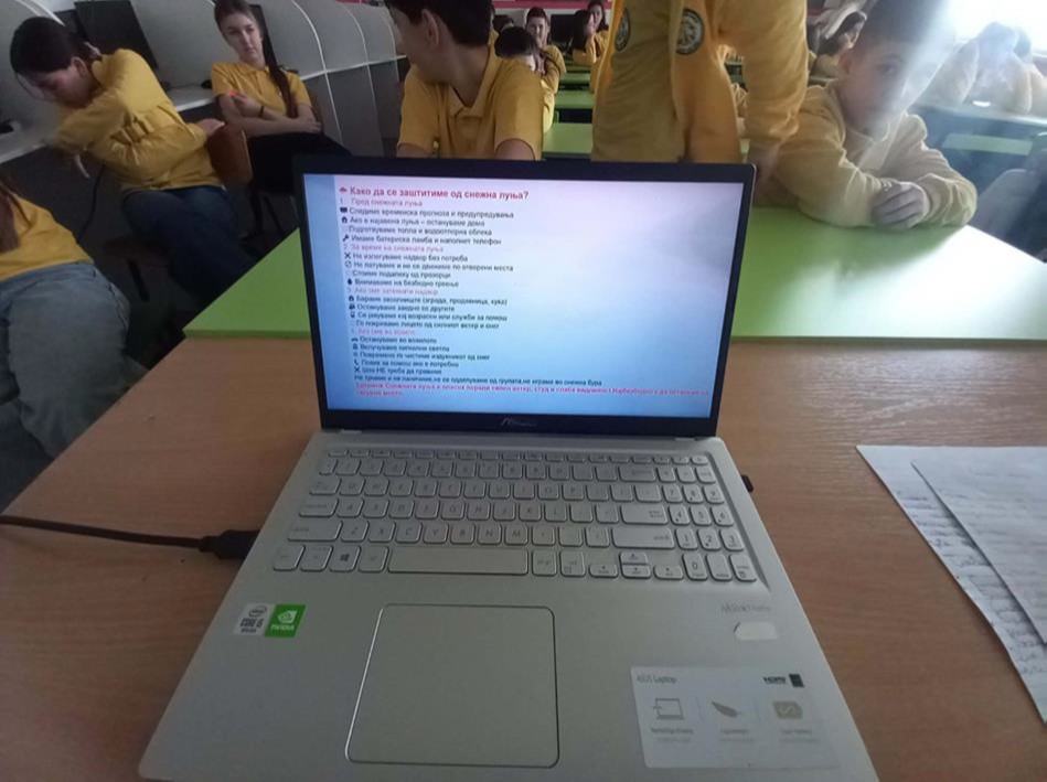 Работилницата беше успешно реализирана и целосно ги исполни поставените цели. Учениците покажаа висок степен на заинтересираност и активност, а стекнатите знаења и вештини ќе придонесат за нивна поголема безбедност и подготвеност во услови на природни непогоди.