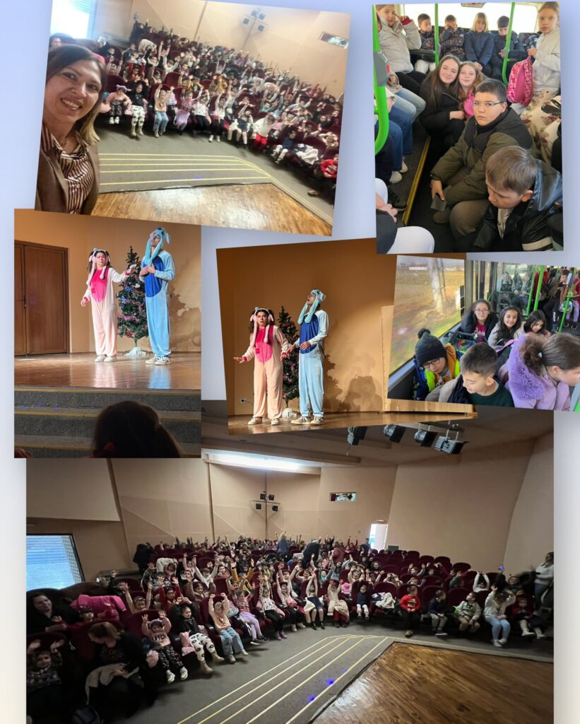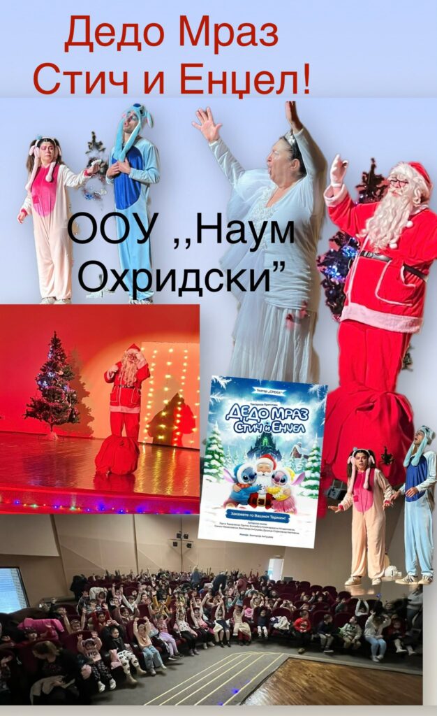 Учениците од нашето училиште присуствуваа на претставата „Дедо Мраз, Стич и Енџел“, каде што имаа можност да уживаат во интересна и забавна програма исполнета со празничен дух.
